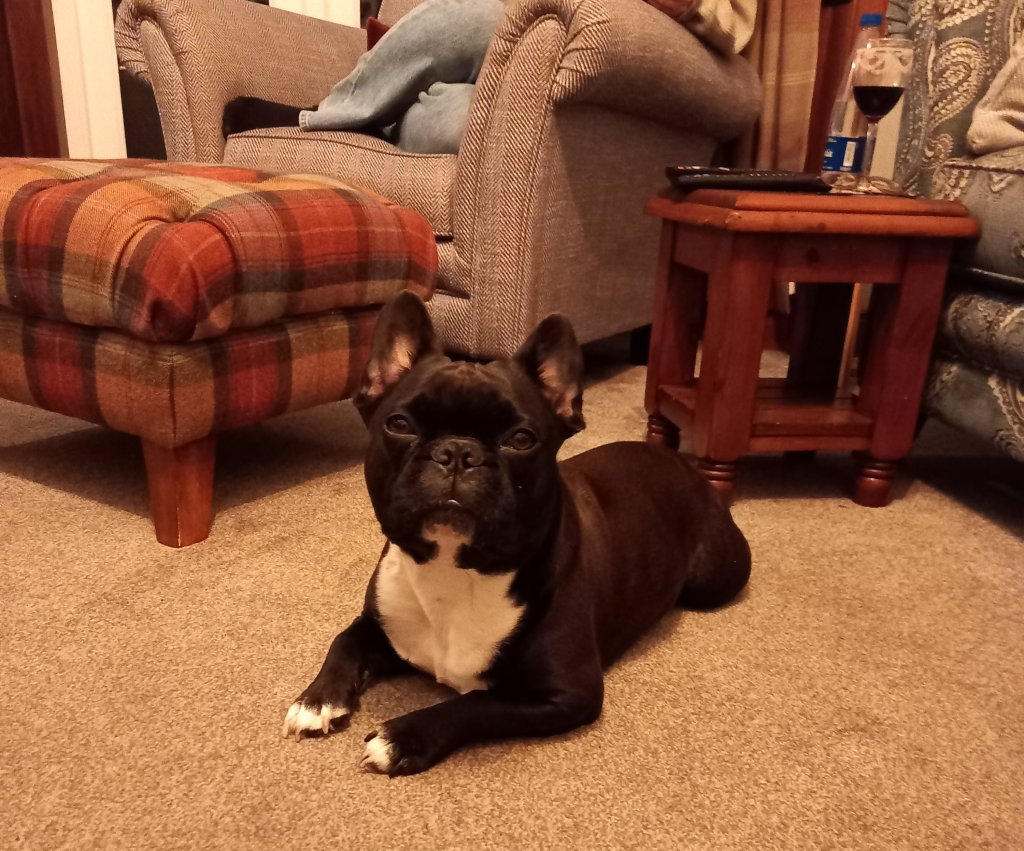 Now I’m sitting on the sofa near the only dog I like.
