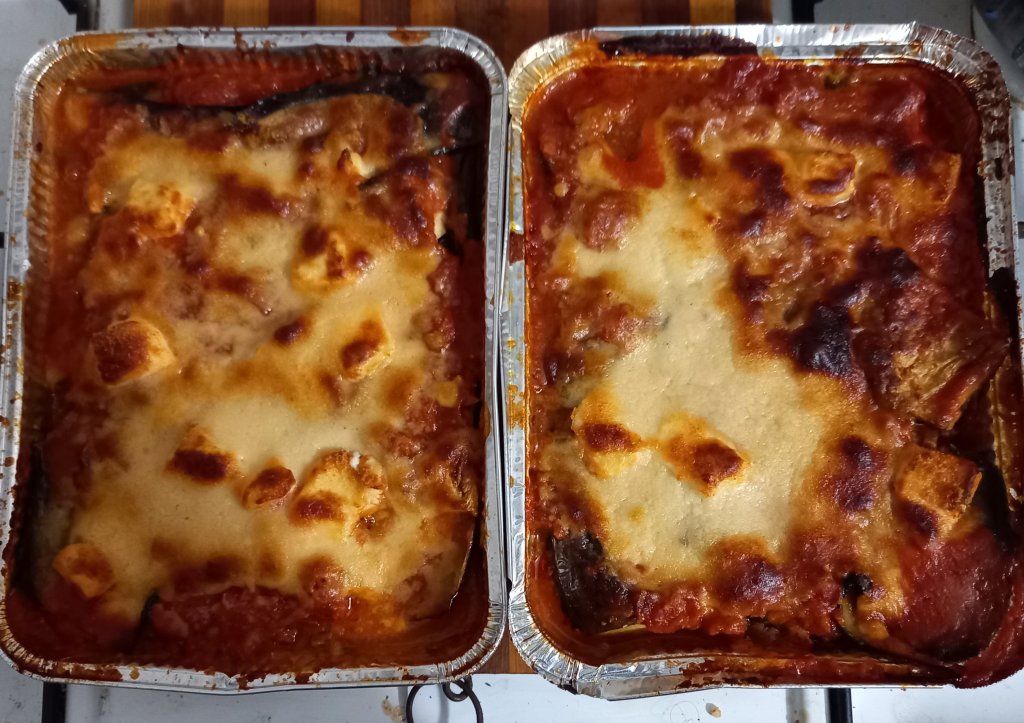 This afternoon I made Christmas dinner. My plan was to make parmigiano di melanzane and freeze it. So it’s done.