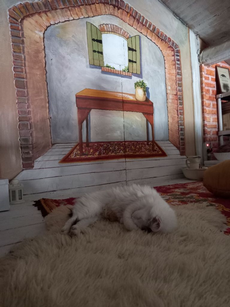 Fluffy came to visit this afternoon and had a long sleep upstairs.