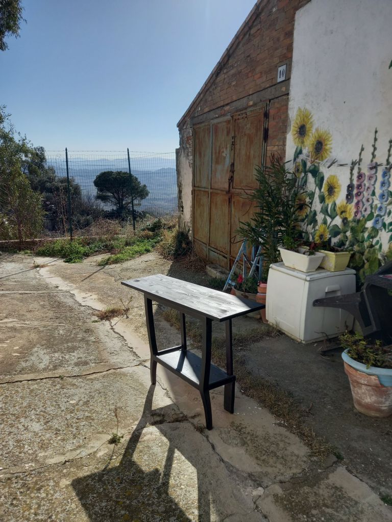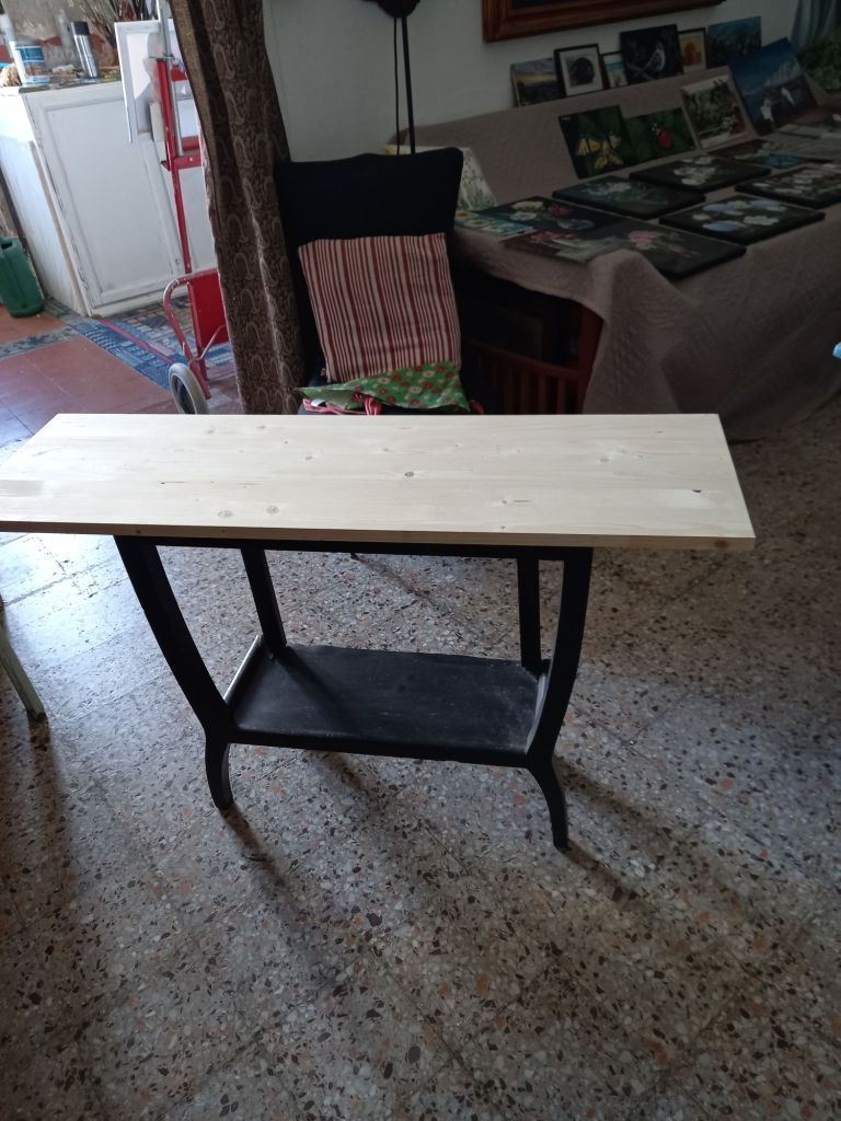 A friend kindly found a piece of wood exactly the size I needed and then attached it to my little ” half table”.