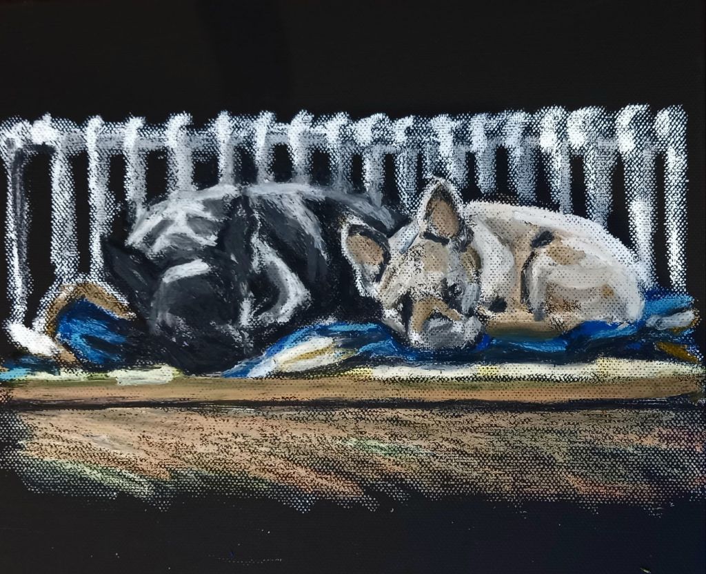 Afterwards I tried to draw the dogs with the water soluble oil pastels.