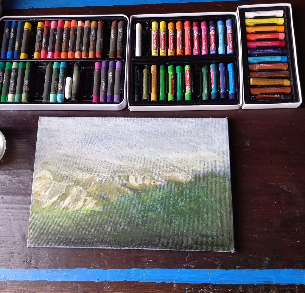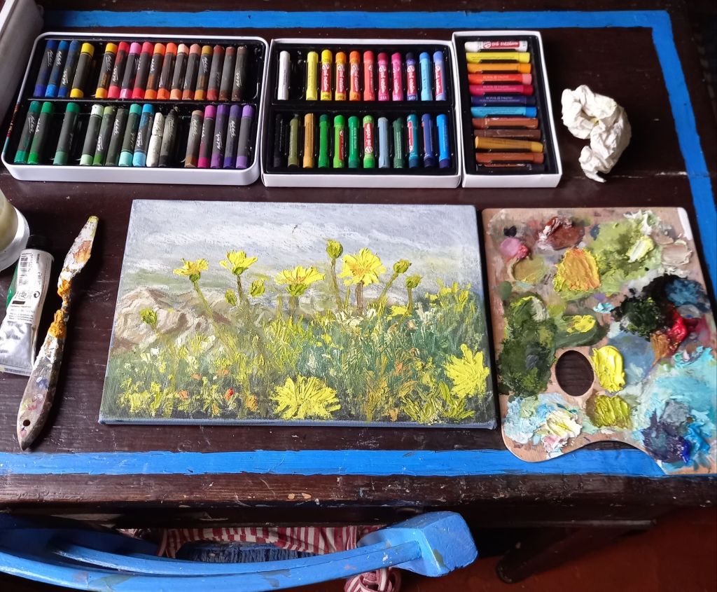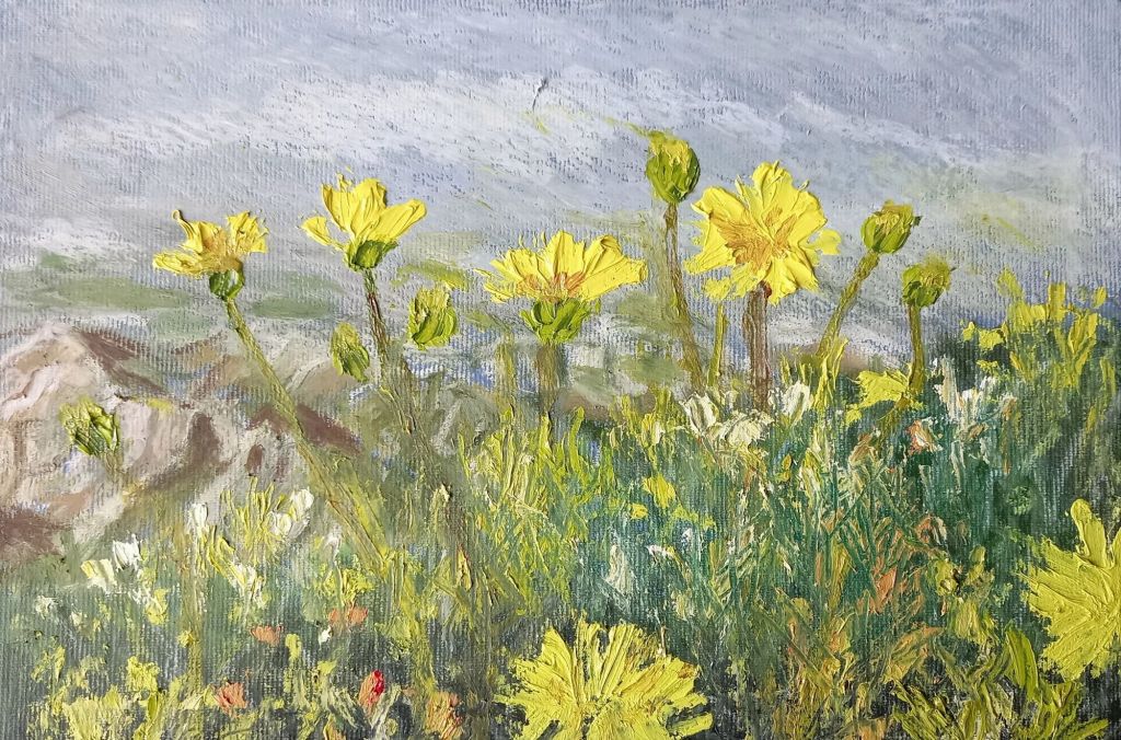 So , I thought flowers would not be a big effort. Then I found the photo of the yellow flowers against the overcast sky and decided that I actually preferred to do something more difficult.