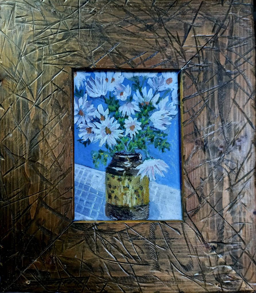 In-between organising a holiday with my daughter…..I forgot to contact my student and painted a small vase with daisies from life.