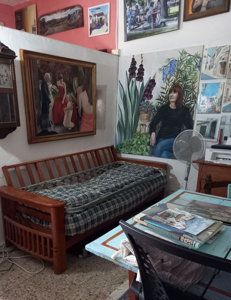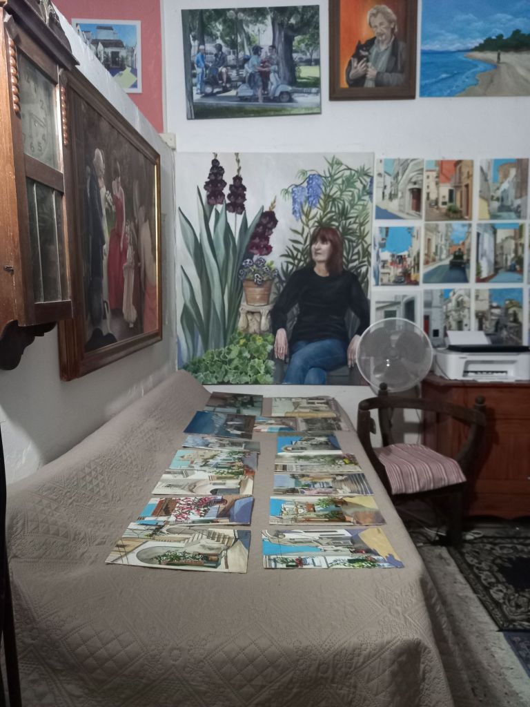 After that my student repeated the same painting from the previous lesson( done with acrylics) , but with oil pastels and then some oil paints.