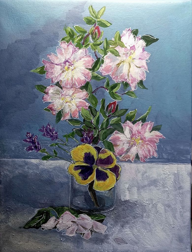 I thought that I’d carry out my plan of painting roses with acrylic paint to see if it was easier.