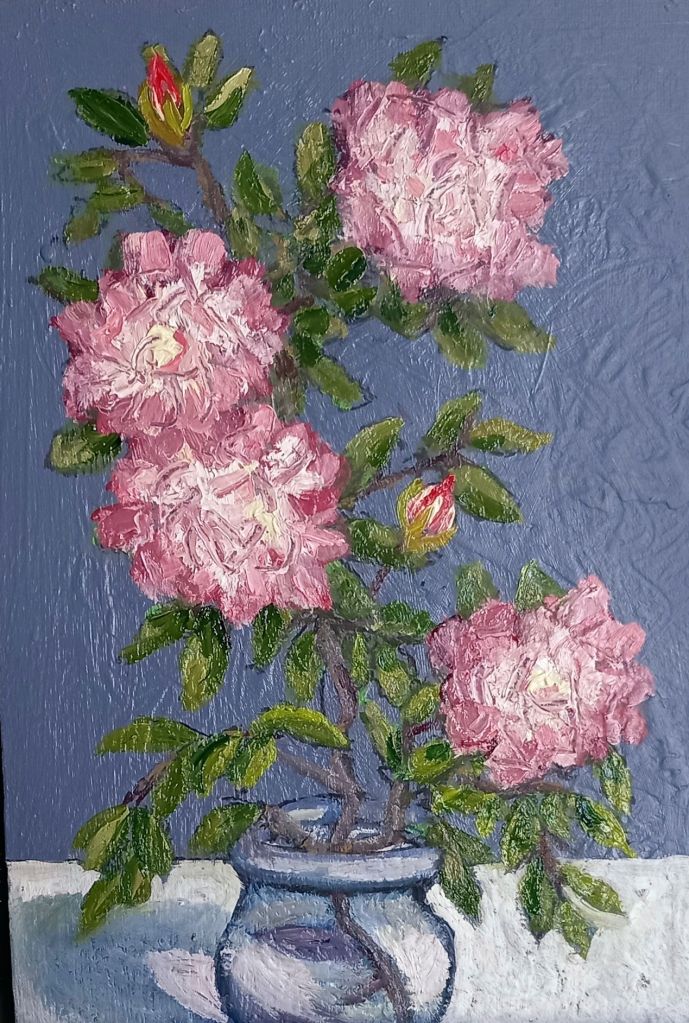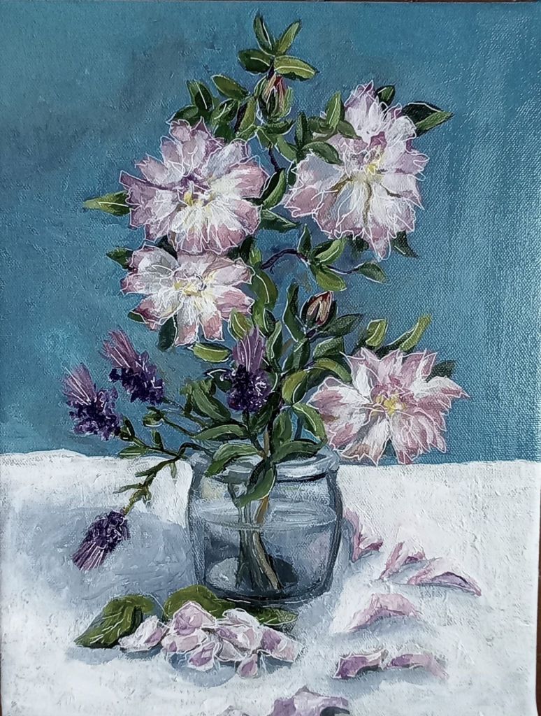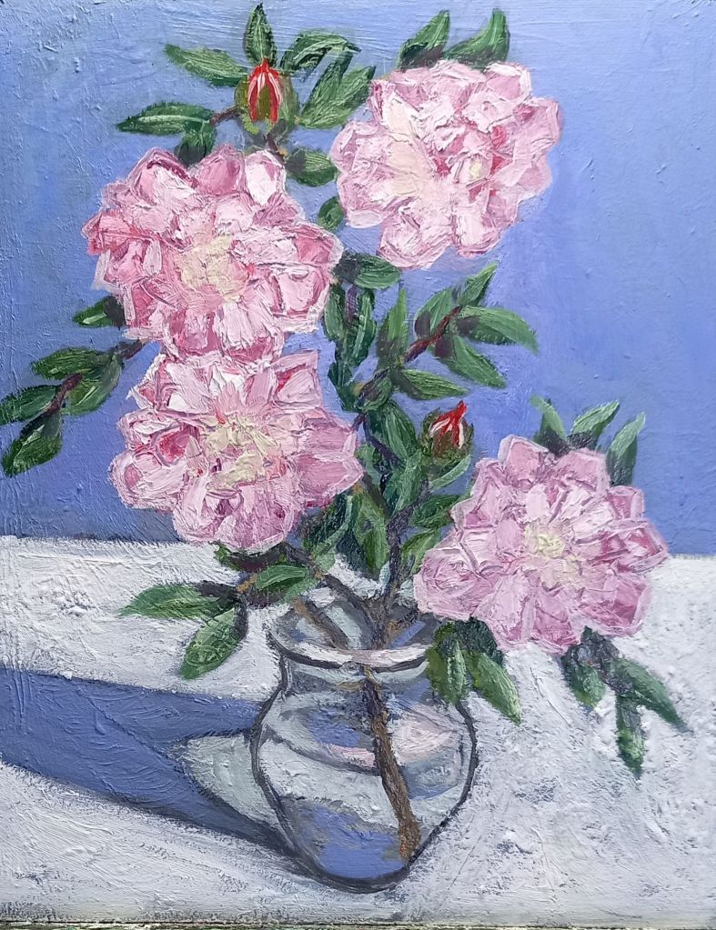 The roses in the acrylic painting are the most similar to the real ones. But the oil painted ones are pretty in a different way.