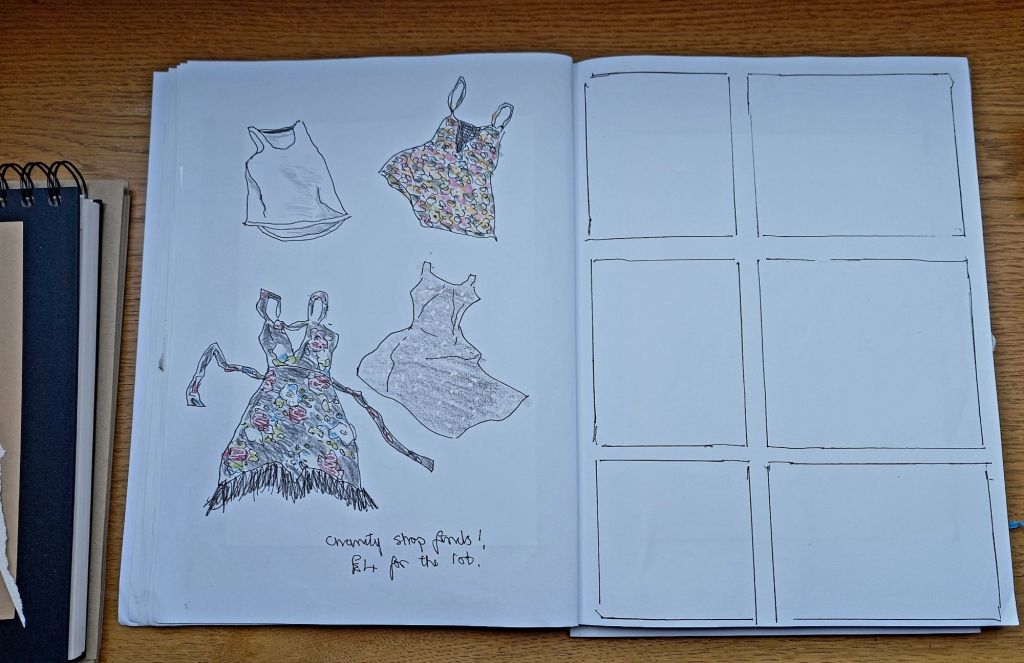 On the reduced to £1 rail I found a nightie from Zara, a lovely brownish dress with white spots, a nice sleeveless white tee-shirt, and a rather fun black flowery dress with fringes.