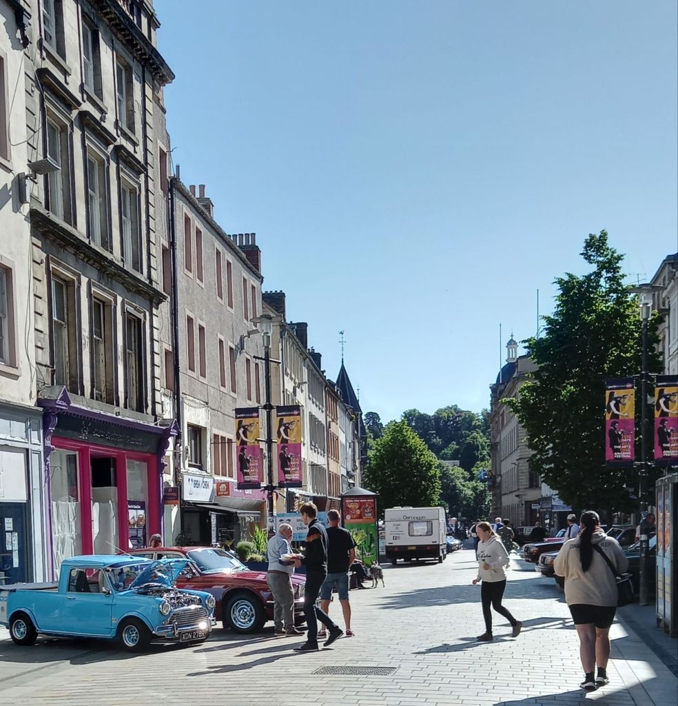 This morning it was lovely in town. The sun shone and there were vintage cars parked everywhere. It also looked like a market was setting up.