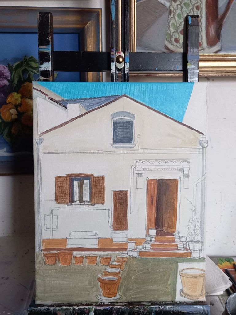 I also began the little house painting. It’s at the horrible stage. It will improve.