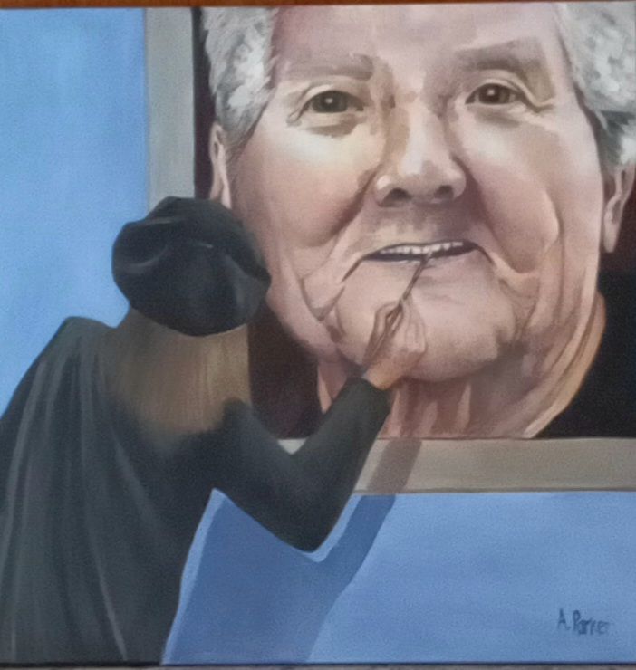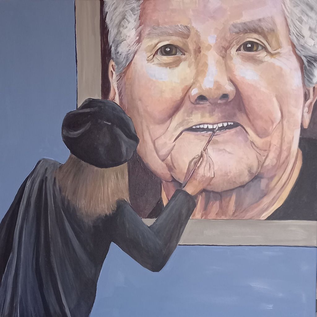 However I also had my old lady painting waiting to go to the exhibition. I decided it needed a little upgrade.