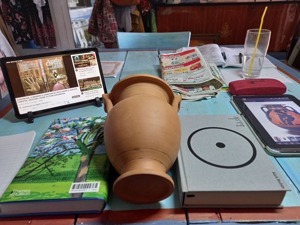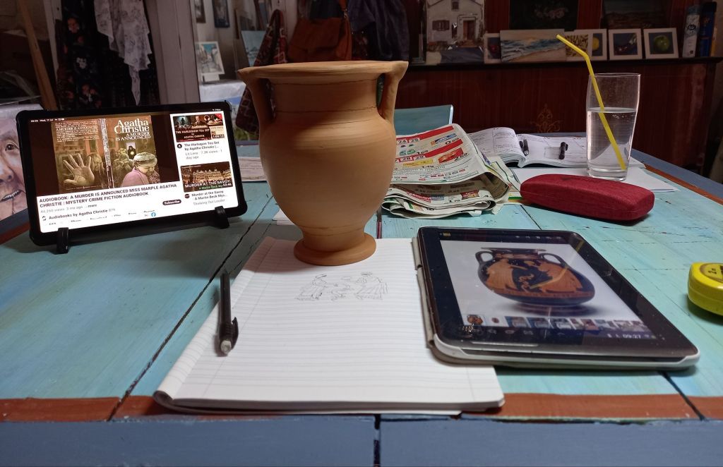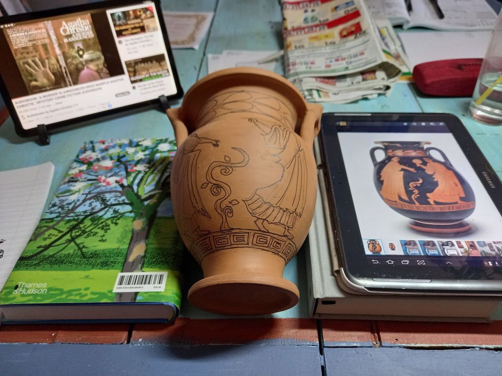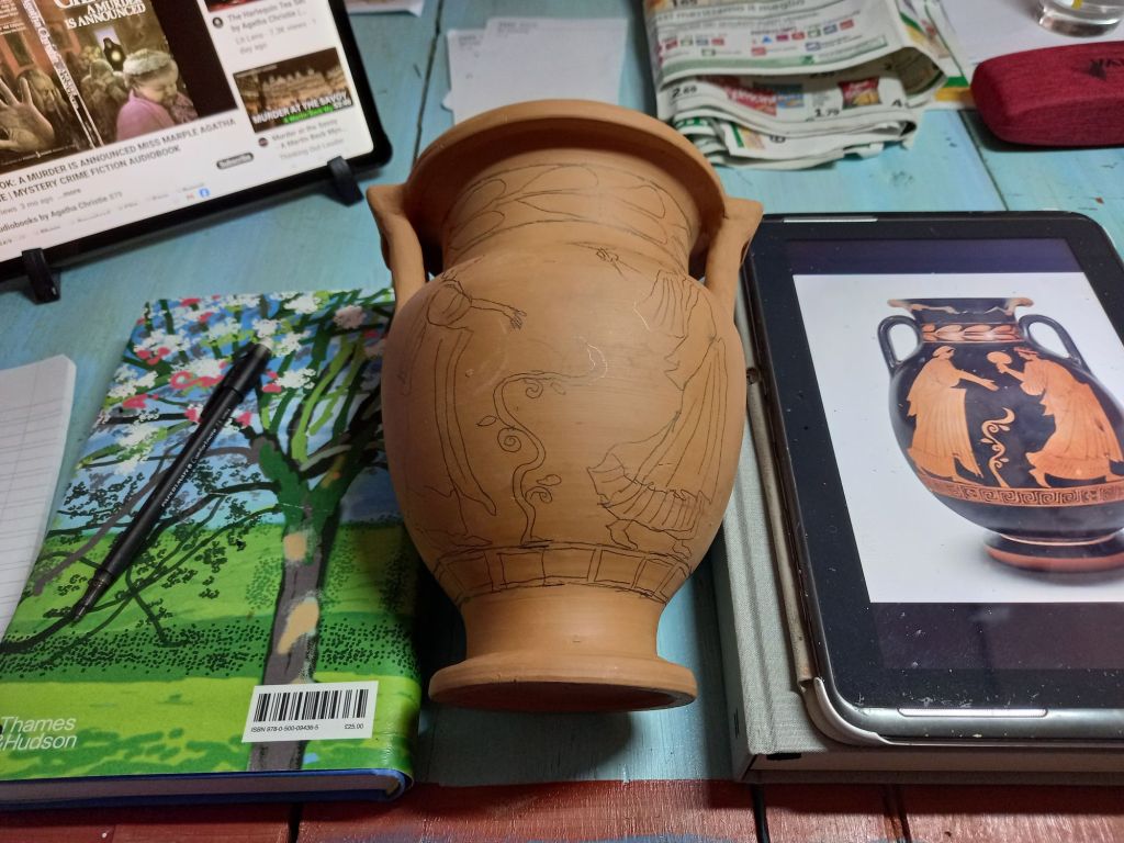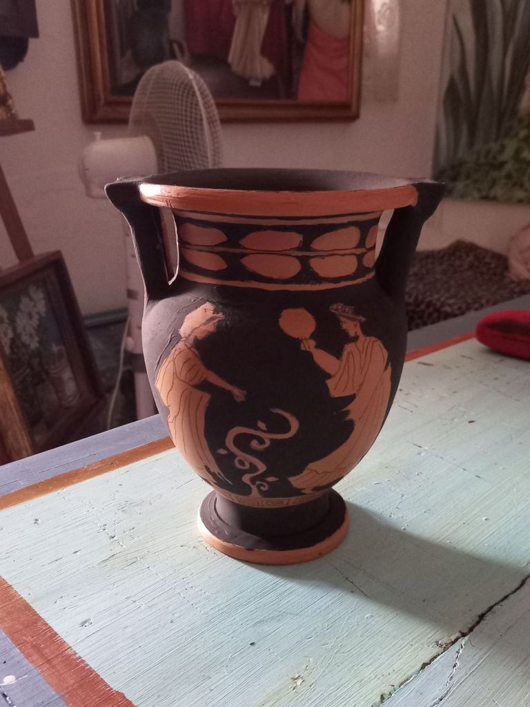 However I painted a terracotta pot in the style of the painter of Pisticci today.