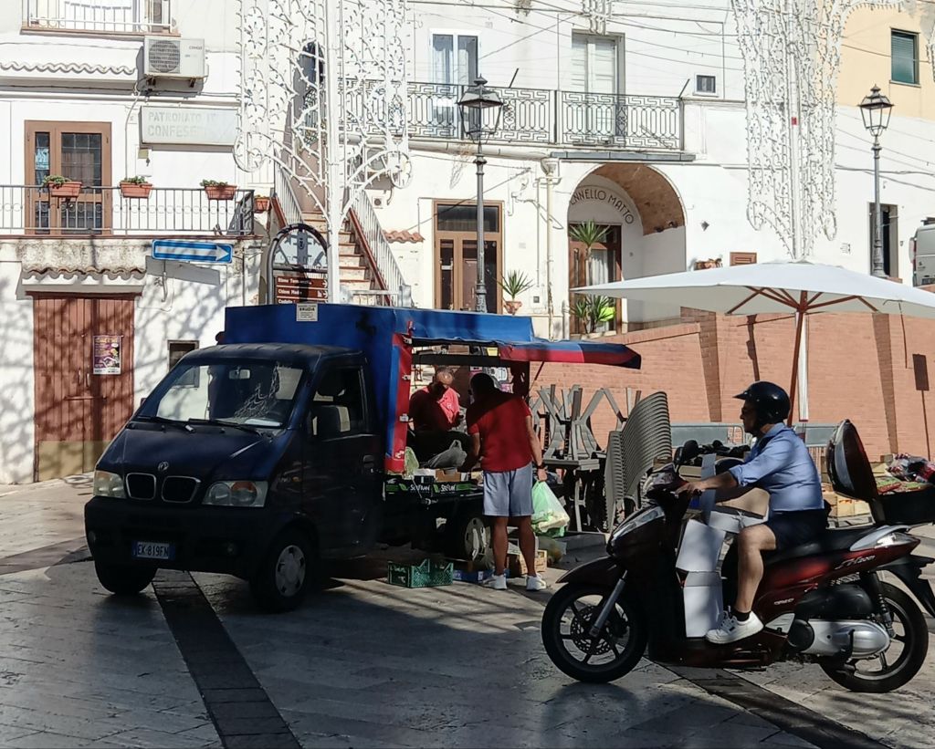 This morning after a quick trip to the supermarket. ( daily exercise.) I got a call from the courier and persuaded him to drop off my parcel in piazza San rocco and not to leave it at the faraway bar.