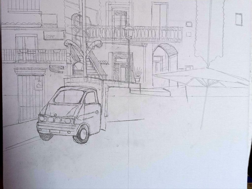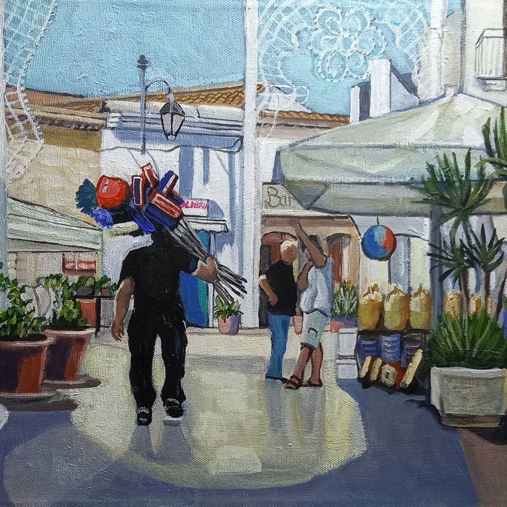After yesterday’s painting I thought that painting some scenes of Pisticci life during the feste would be fun. I am liking including people.