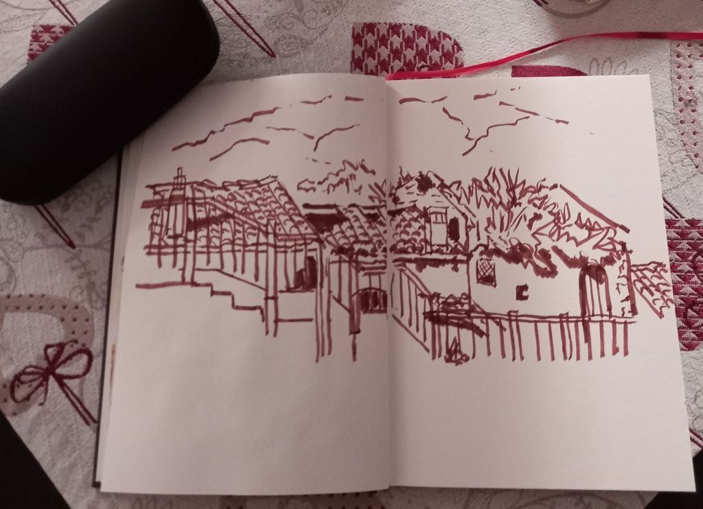 I only spent about half an hour sketching, then ants and the heat got too much. I used a brown watercolour brush pen. It was lovely to draw with.
