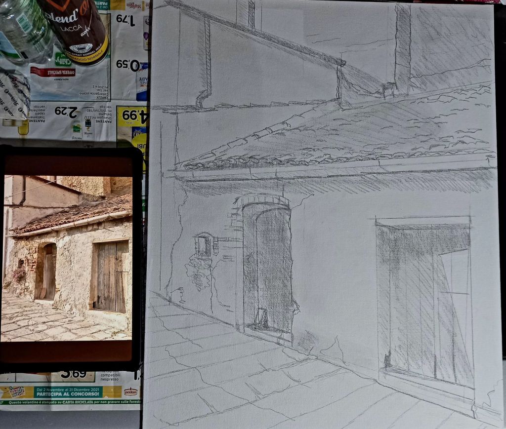 I went out this morning around 7.30am and sat up by the church sketching some old roofs. It was part of my plan.