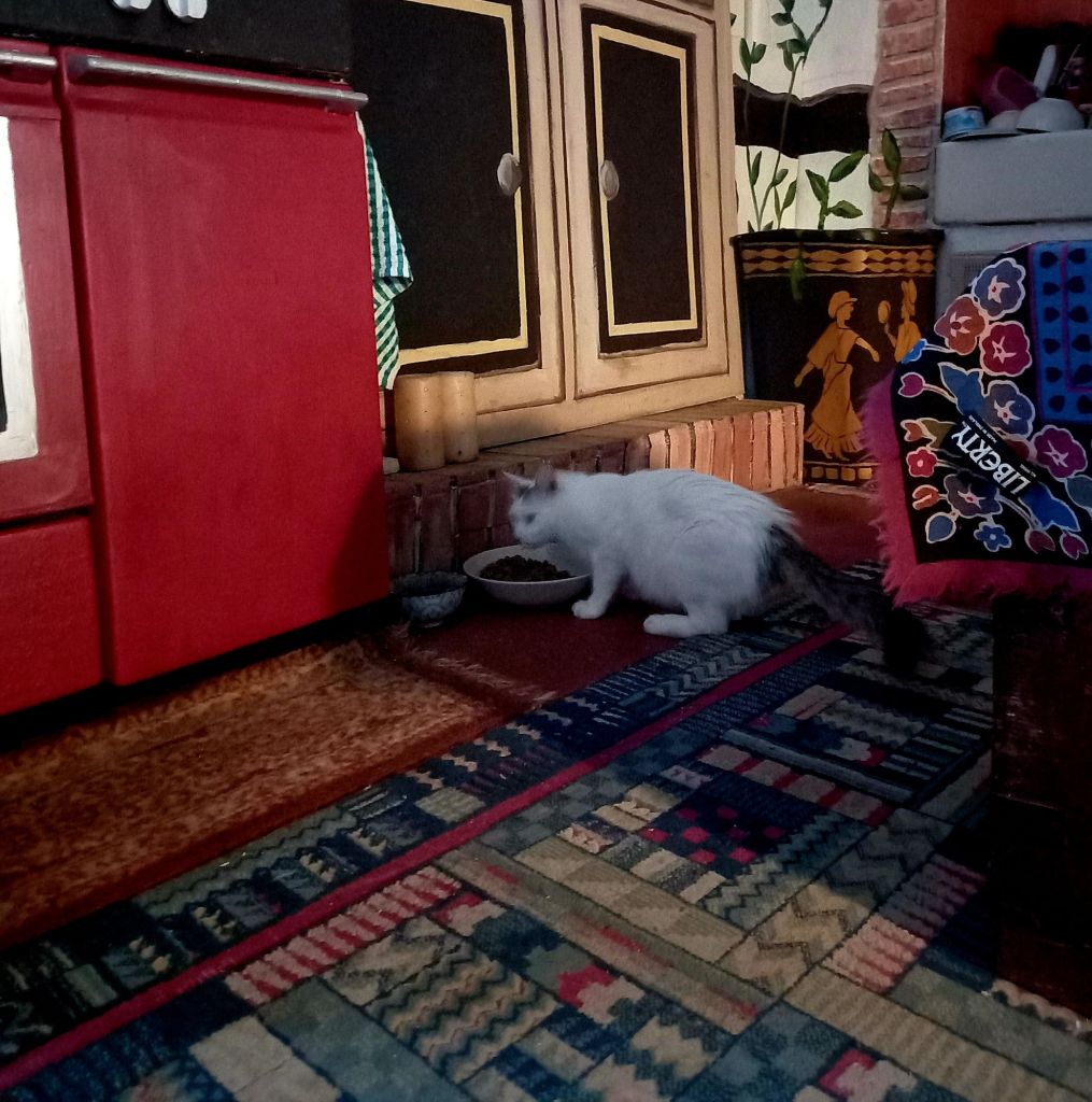 I was just going to write this when Fluffy arrived. The aircon hose sticks out the door so she just climbs over it and wanders in. She seemed pleased to see me. As I was to see her.