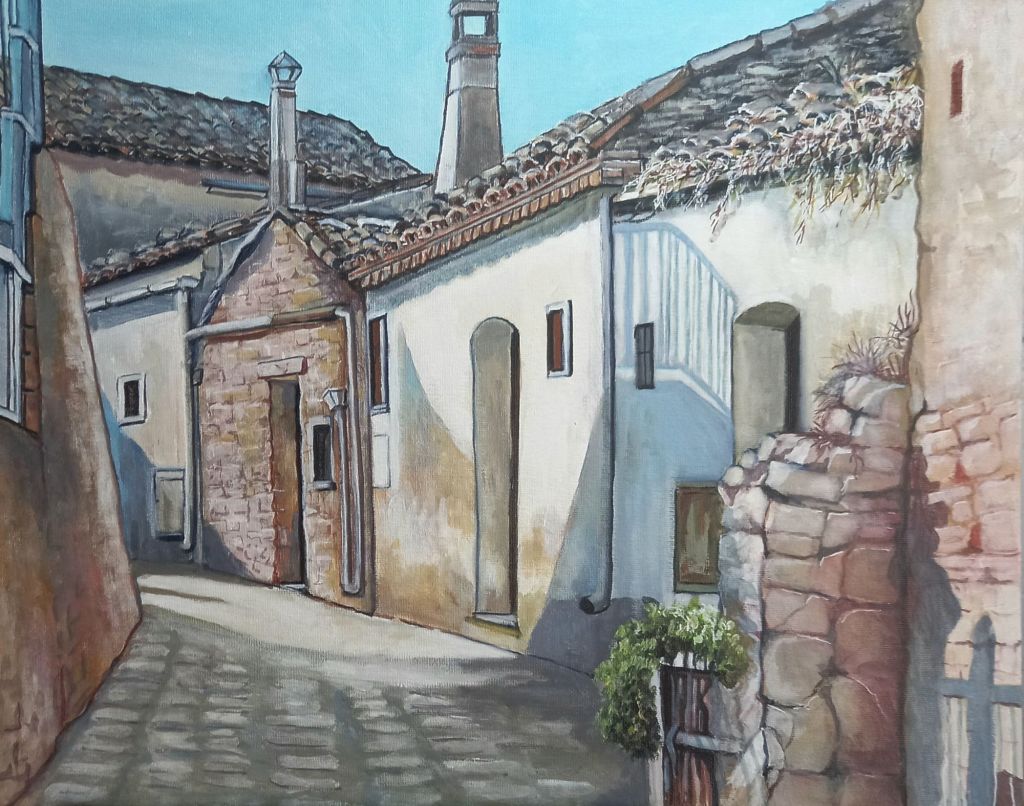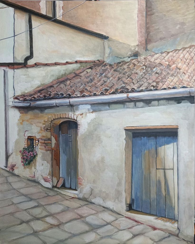 Anyways, I began the finishing work on the 2 paintings of Oliveto lucano and by lunch time they were both done. I’ve been using watercolour pens to add detail which is great fun.