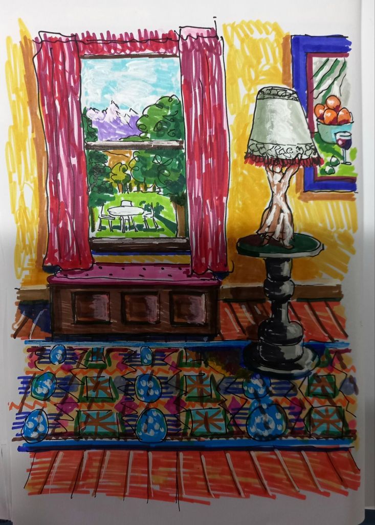 So eventually this afternoon I thought I should try doing something in my sketch book inspired by her.