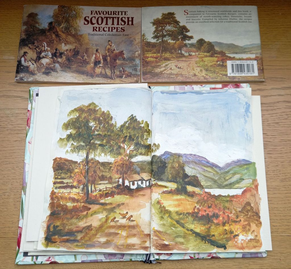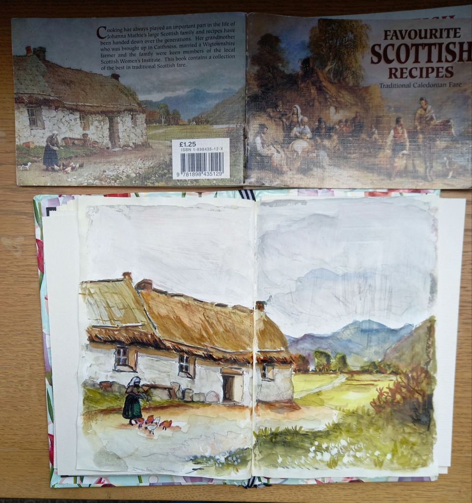 I had already drawn 2 scenes from the little Scottish recipe books I bought.