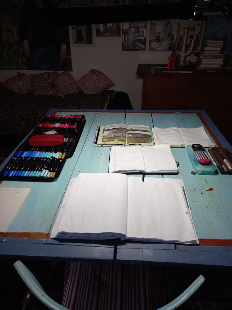 Tomorrow I want to have some fun planning my next big painting and maybe doing some sketches or whatever in my big sketch book.