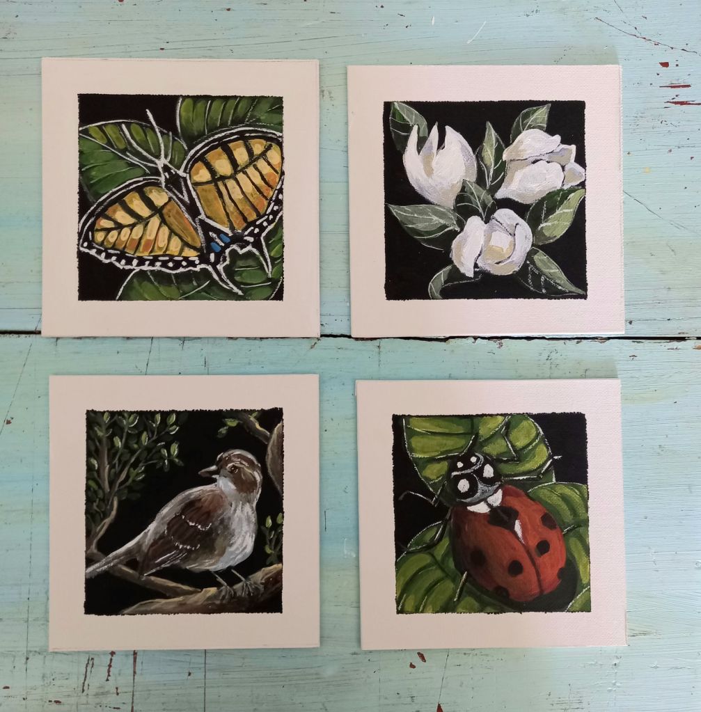 Then I got to work on four little ” gift” paintings.