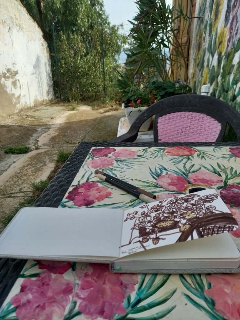 And finally, also inspired by Sandi Hester , I took my tiny sketchpad outside and spent 5mins drawing strawberry plants. Assuming that I was bound to fail so there was no stress. ( it’s an artist thing.)