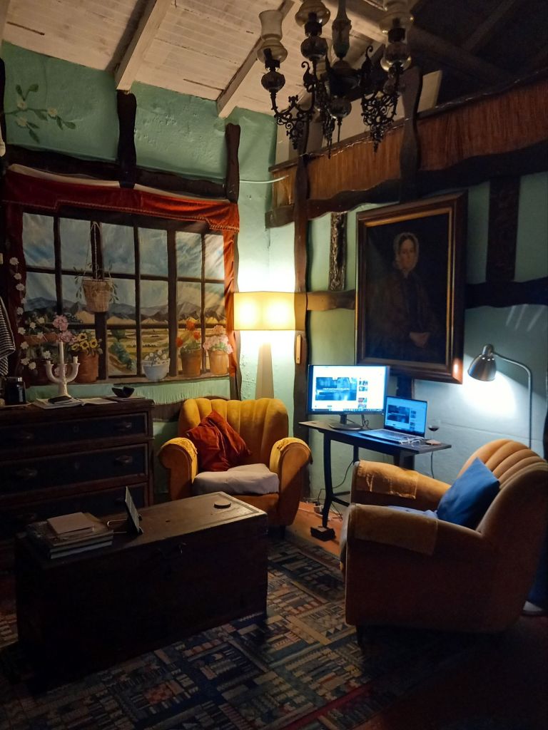 Am sitting by myself enjoying my little house. There are twinkly lights on the mantelpiece and on the oleander outside the door. Tonight I plugged in the nice lamp in the corner which was a house warming gift. I’d forgotten how cosy it made everything look. I stopped using it a few years ago when I bought solar lights in an attempt to save money.