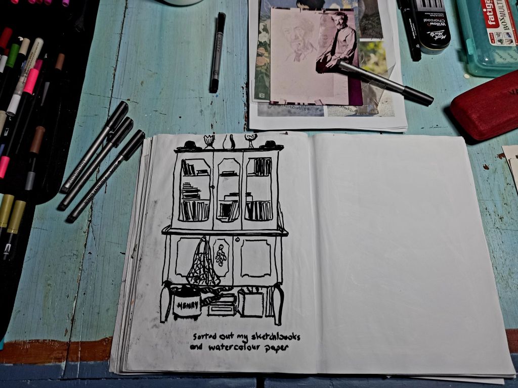 All my sketch pads are now in the dresser in my gallery. And all my water colour paper too.