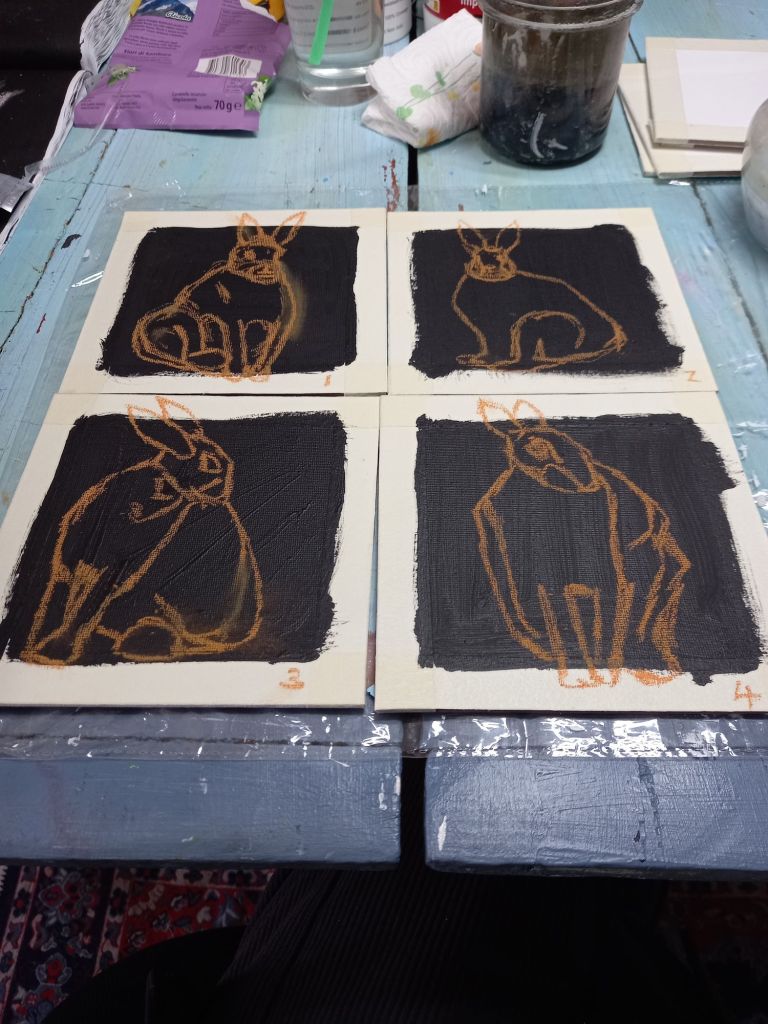 Like yesterday, I painted more hares.