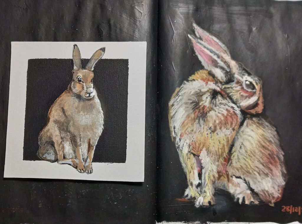 If I paint the last hare tomorrow then that will be number 15, this time, including the one in my sketchbook which got me started again.