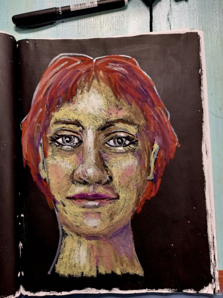 Just for fun I thought I’d draw a face in my sketchbook using the water soluble oil pastels.