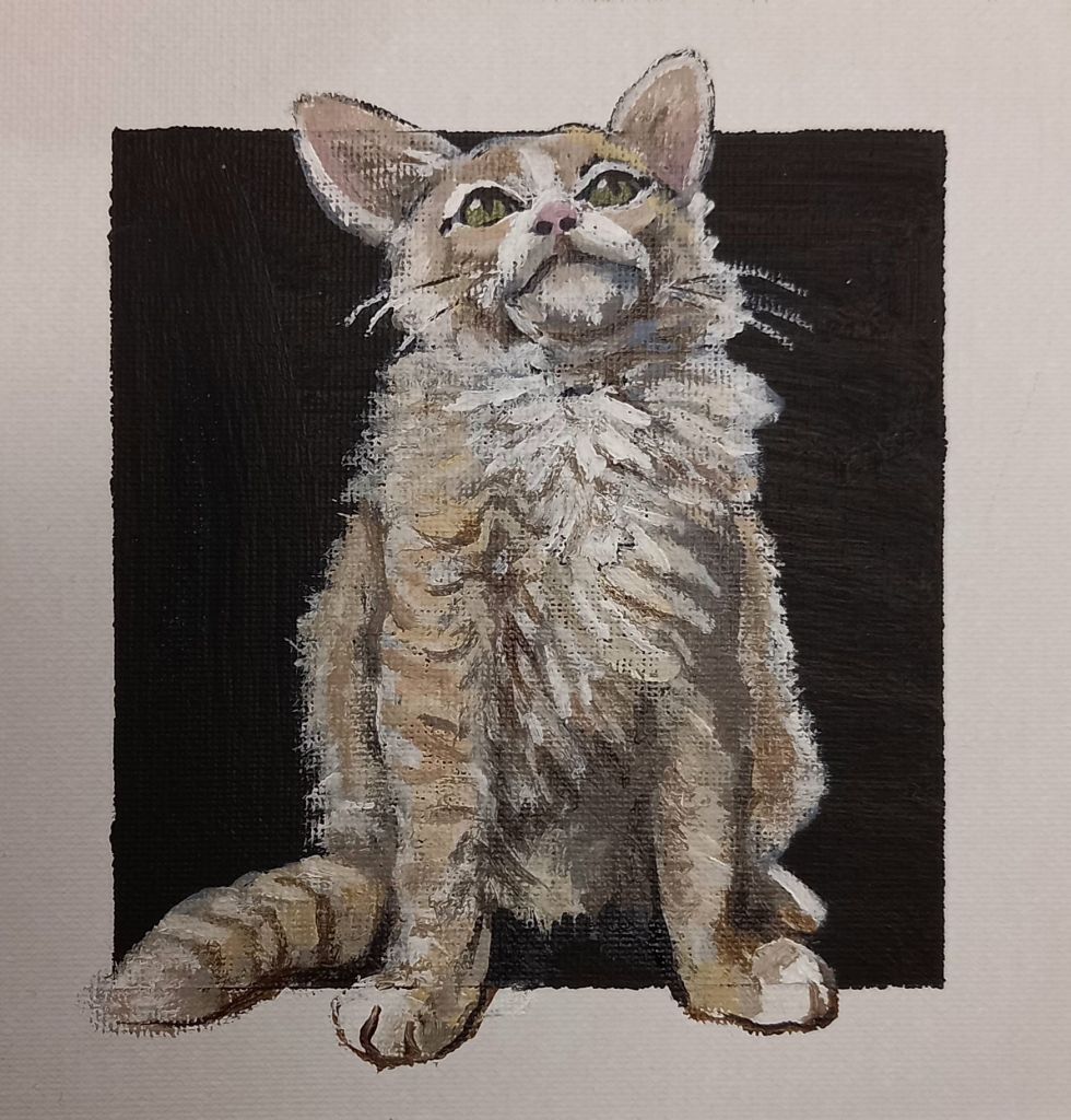 Now the pellet stove is burning in the corner. It’s the weekend and I have a successful experiment, more cats to paint and two books to look forward to reading.
