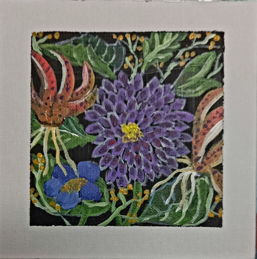 Then I got my new book ( Kateryna Bilokur) and chose some flowers I thought I could paint.