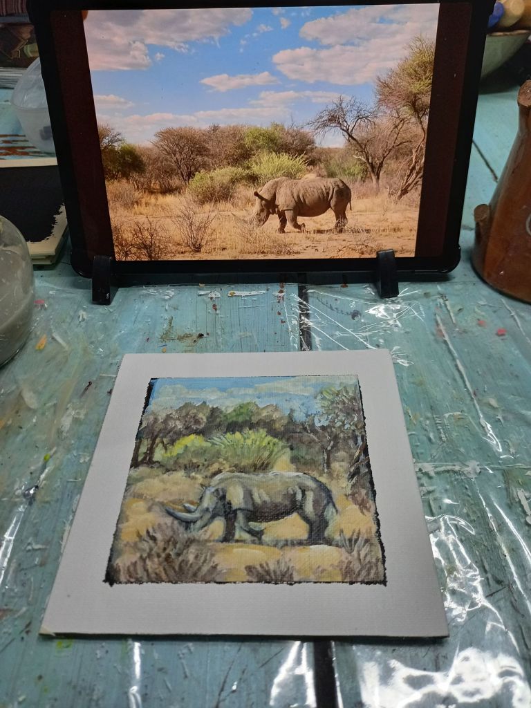 And then I tried to paint a rhino in the wild. It was to be a gift for a friend.