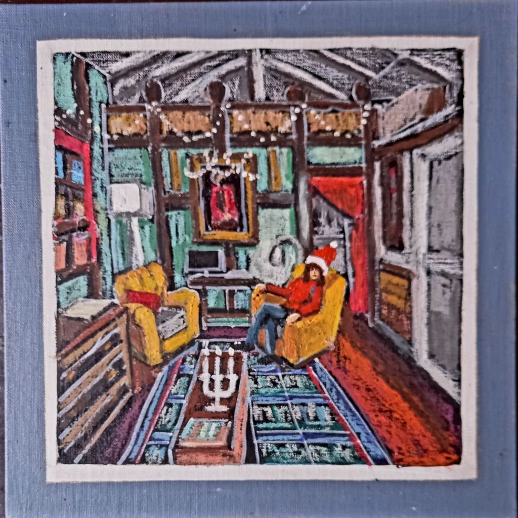 And using fixative on my Christmas card painting as well as adjusting it a little bit.