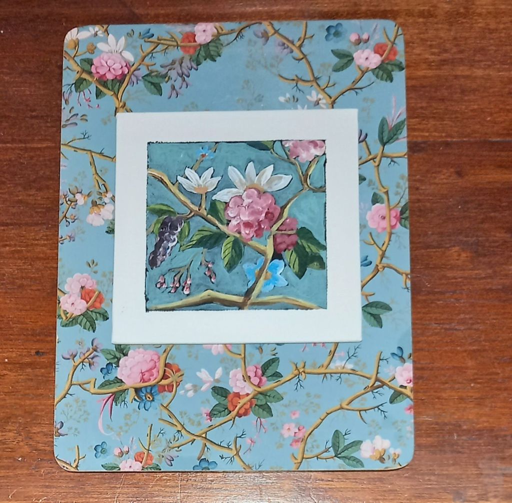 This afternoon I painted some flowers from one of Katy’s place mats…..because I liked it and painting the little canvases is like therapy or meditation. A bit of concentration, but no stress.