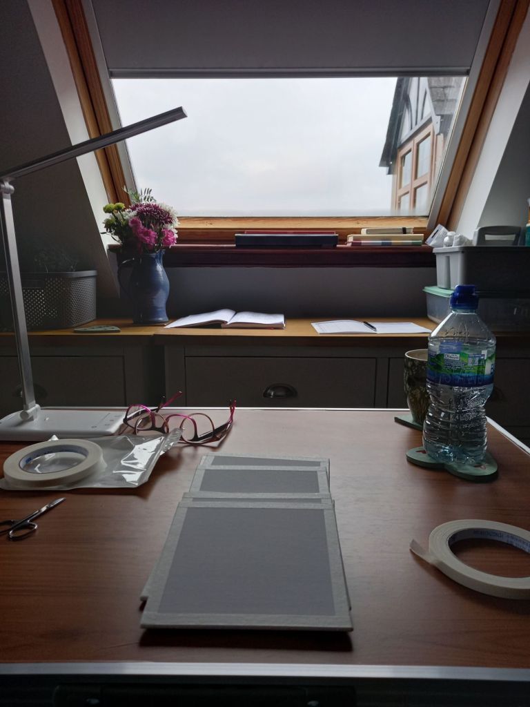 I didn’t start painting today, but I taped up another 8 small canvases.