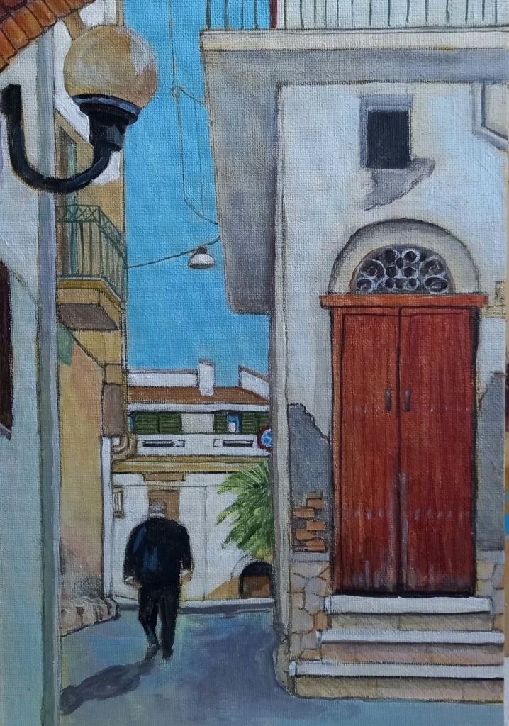 Today I painted the next round scene of Oliveto lucano. It was much more complicated than it looks.