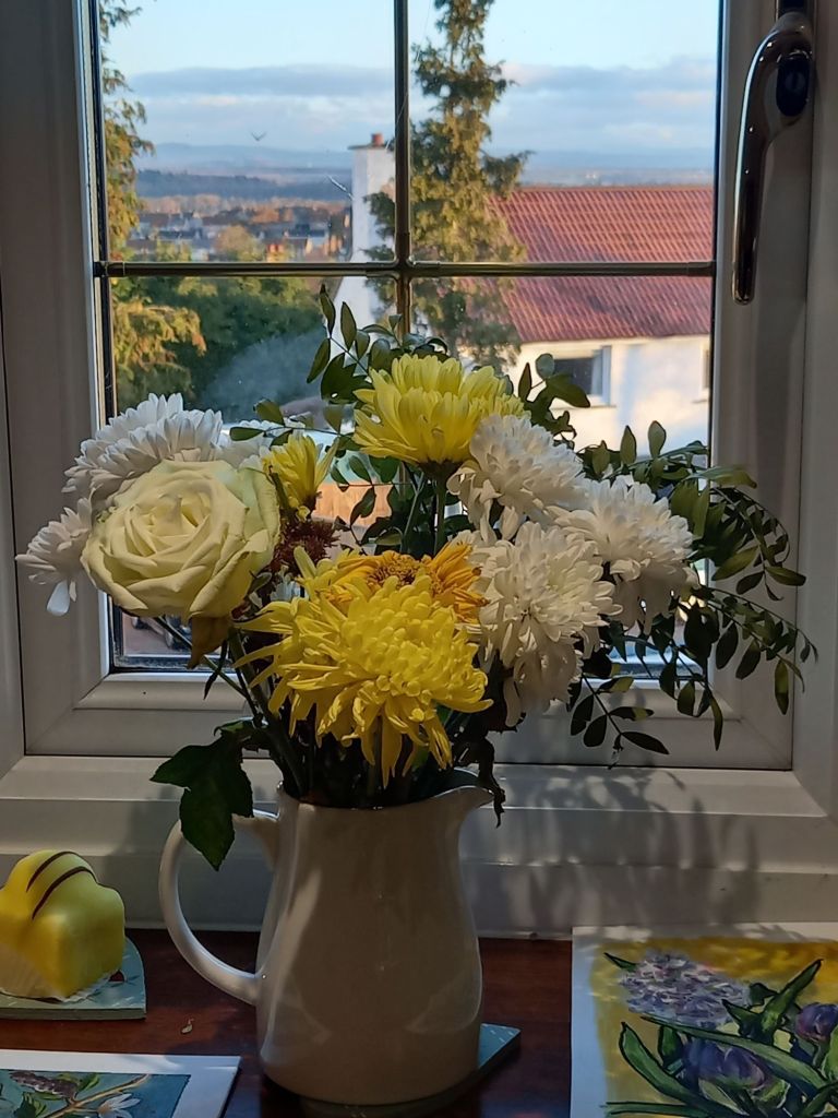 So I went out this morning and bought some things to put in the basket I’m giving Sam as a housewarming present along with scones and bread. That was fun.