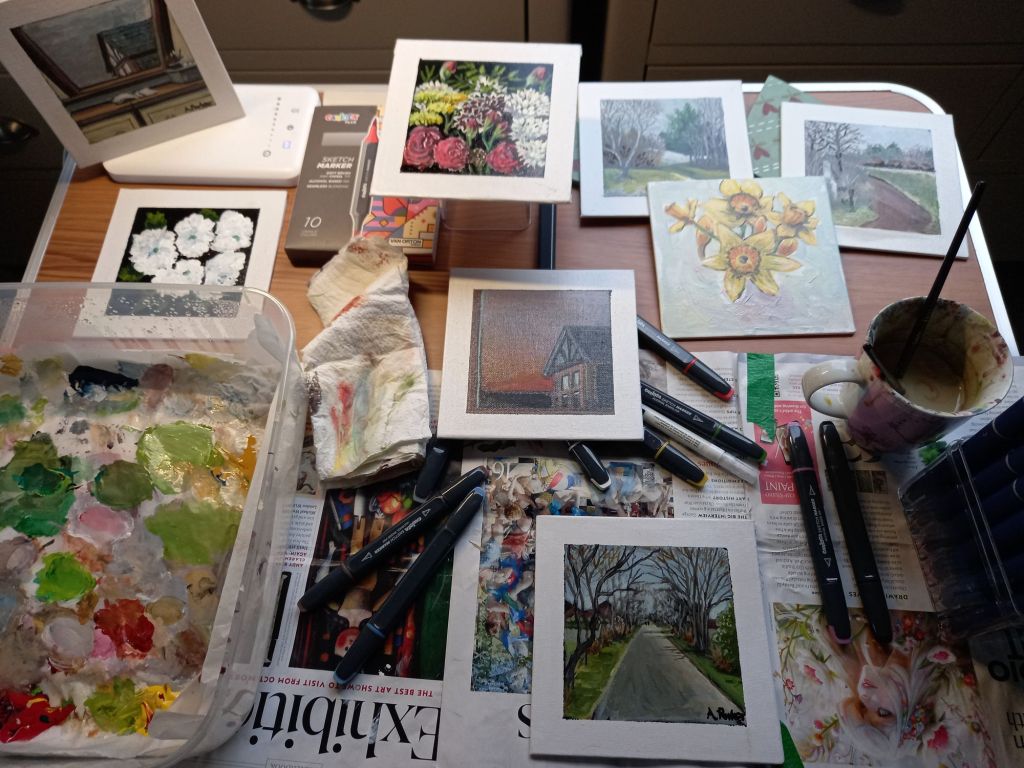 Instead of working on the fourth Oliveto painting I tidied all my painting equipment and tried to fix some of the small paintings I didn’t like so much.