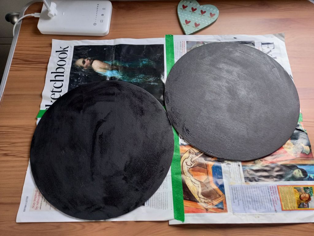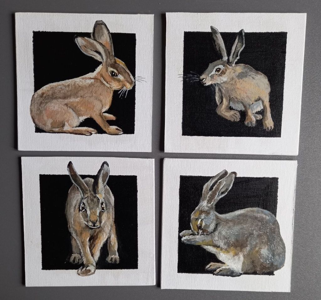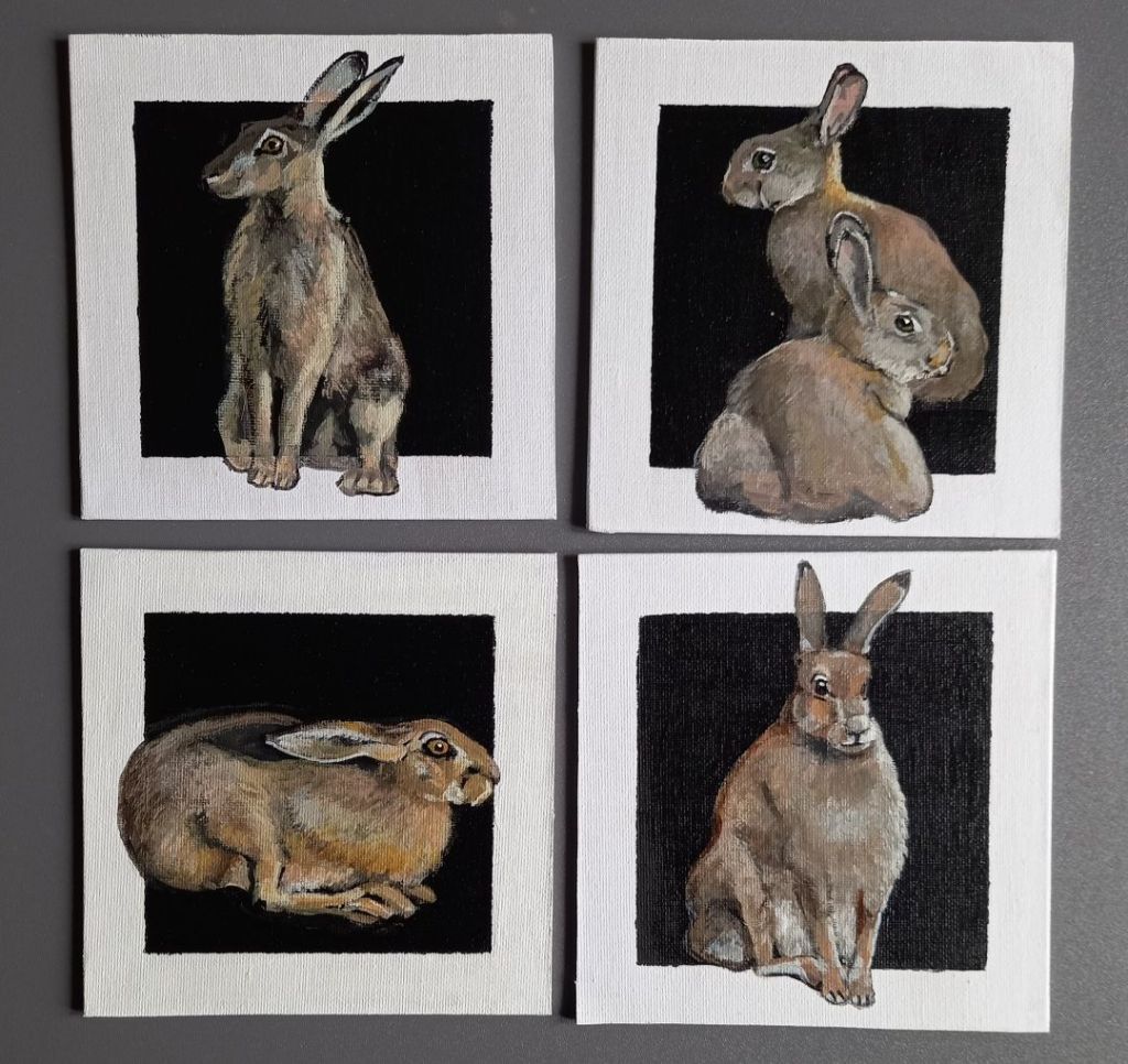 So I think I’ll paint hares on round black canvases.