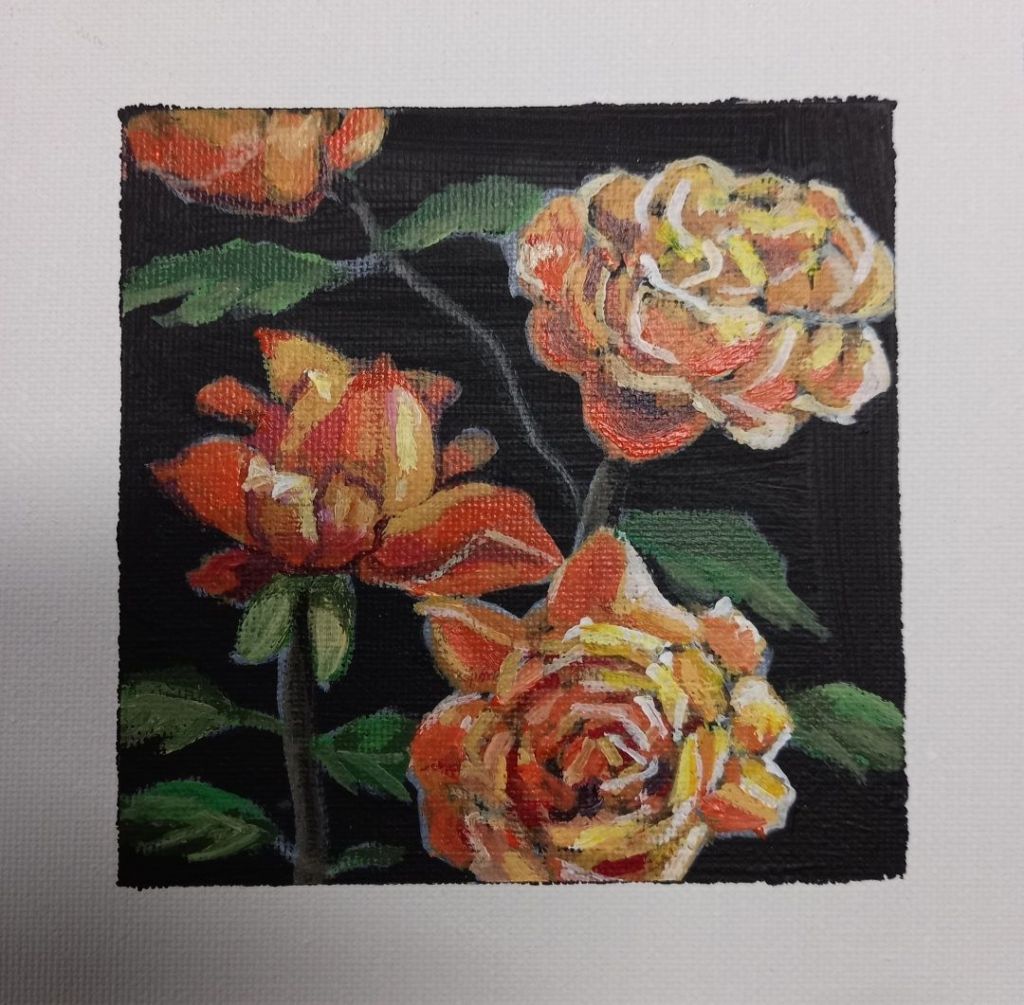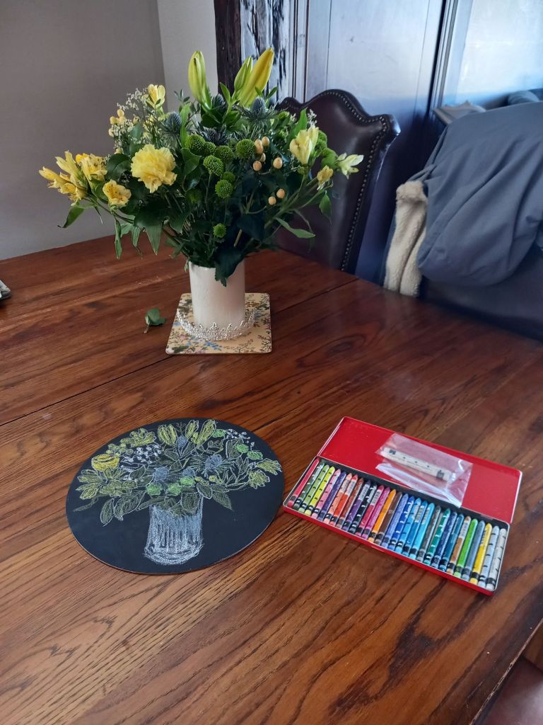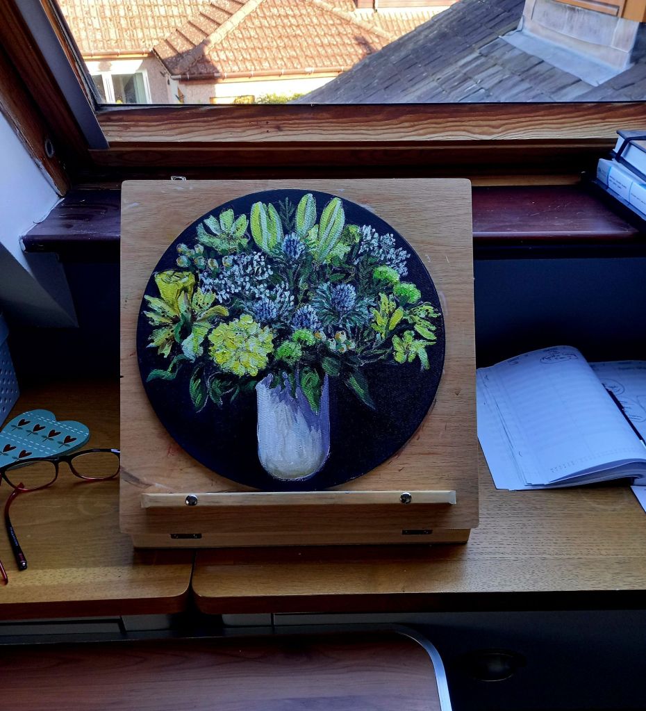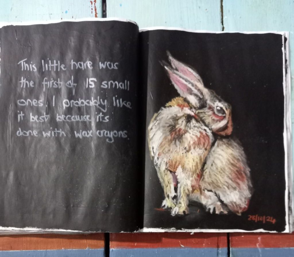 Then I was going to paint a hare until I noticed Katy’s prizewinning flowers and thought that I’d better paint them instead.