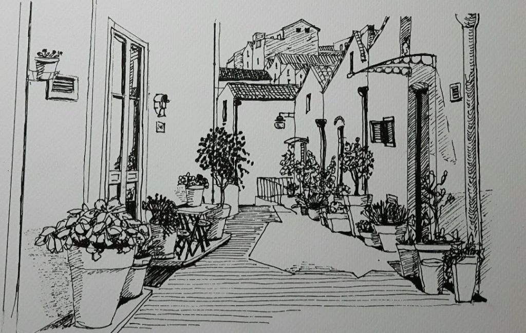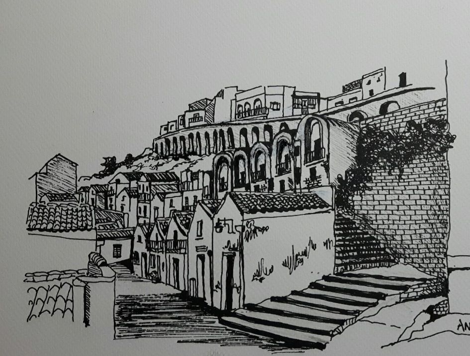 In late summer 2018 I was drawing Pisticci in ink and then Perth in watercolour.