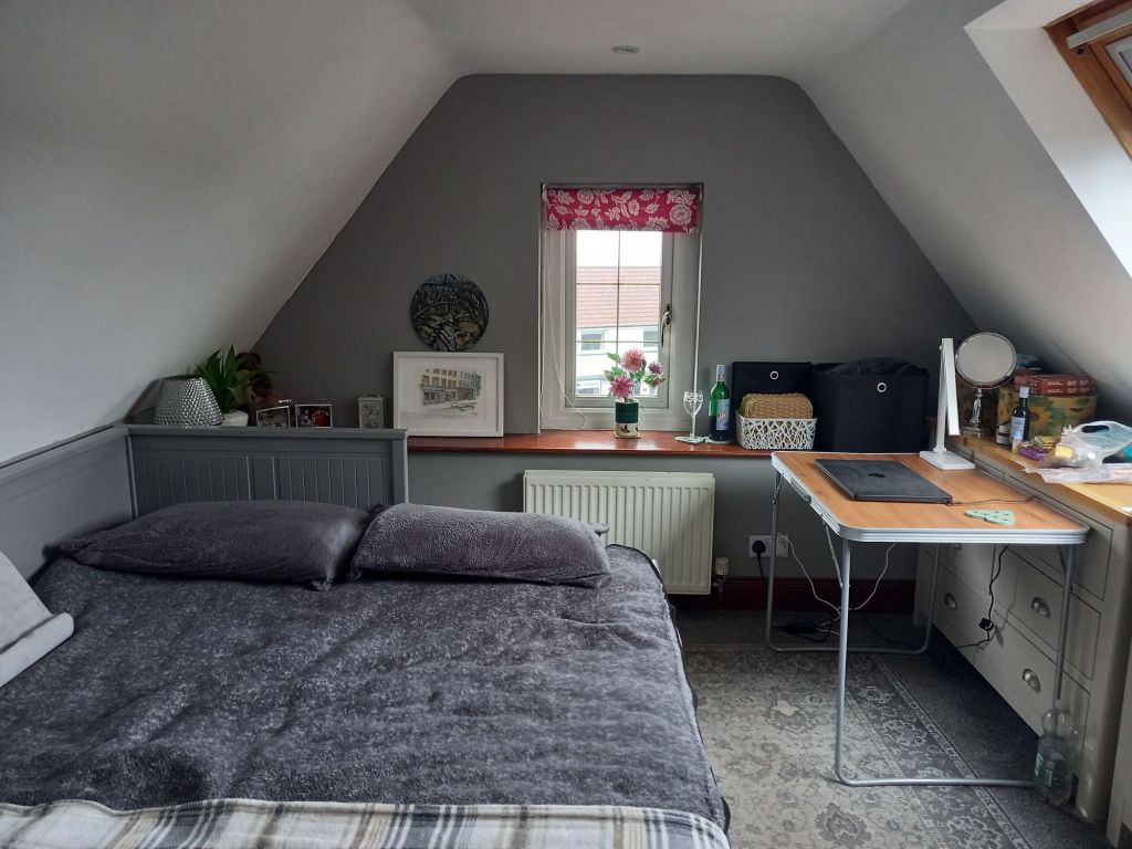 But, after a lot of tidying, packing, weighing, repacking and filling up the little hole in the eaves with paintings and equipment my little room looks much more impersonal. That helped!