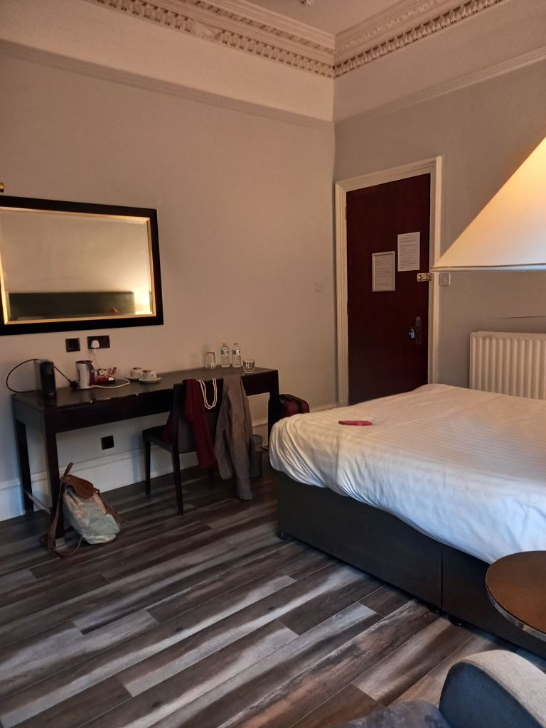However I’m now in a reasonable sort of hotel. It’s in a lovely old house, but it’s like someone has just made as many rentable rooms as possible. It was relatively cheap, is in a nice street near Haymarket Station and it was easy to find.