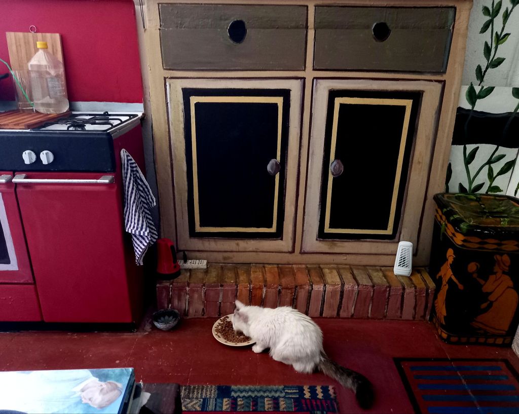 The worst of the marks on the floor are now painted over. It doesn’t mean that I won’t paint the whole floor some time.