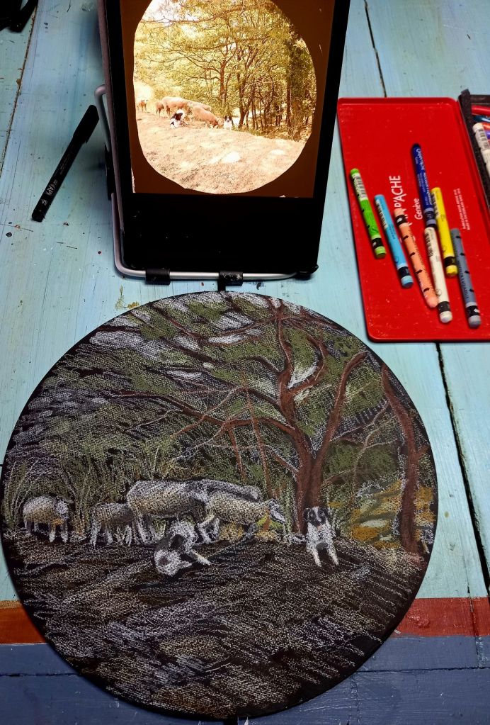 And then after siesta…. ( I read that having siestas could prevent heart attacks…..and I like having a couple of hours off.) I drew my next 3 round scenes near Oliveto Lucano .