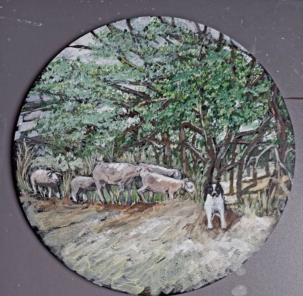 This afternoon I worked on the next round painting and remembered how useful a sponge was for creating a leaf effect.