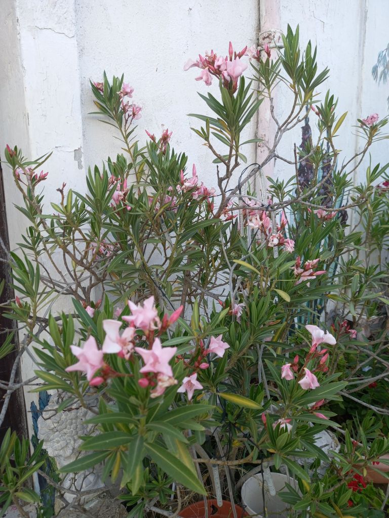 My first job was to water my poor flowers and pull off as many of the yellow leaves on the oleanders as possible. They look much better now. I watered them again tonight .