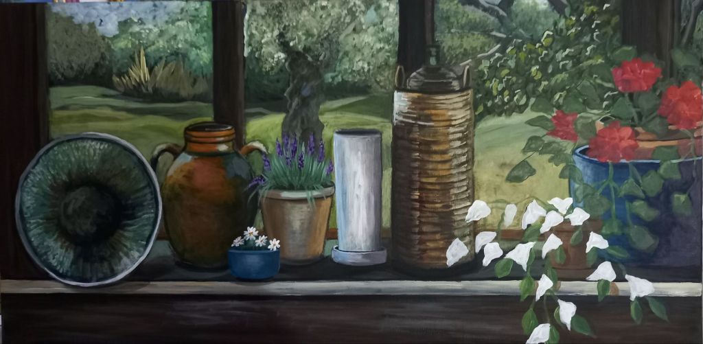 Then most of the rest of today I’ve worked on the big painting of the view from the veranda in my old house in the country. I have 2 very small versions of this.